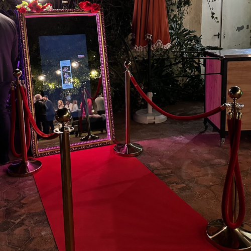 ¡Nuestro producto estrella! Es un exclusivo fotomatón espejo mágico que asegura dar un toque de elegancia y diversión a tu evento.